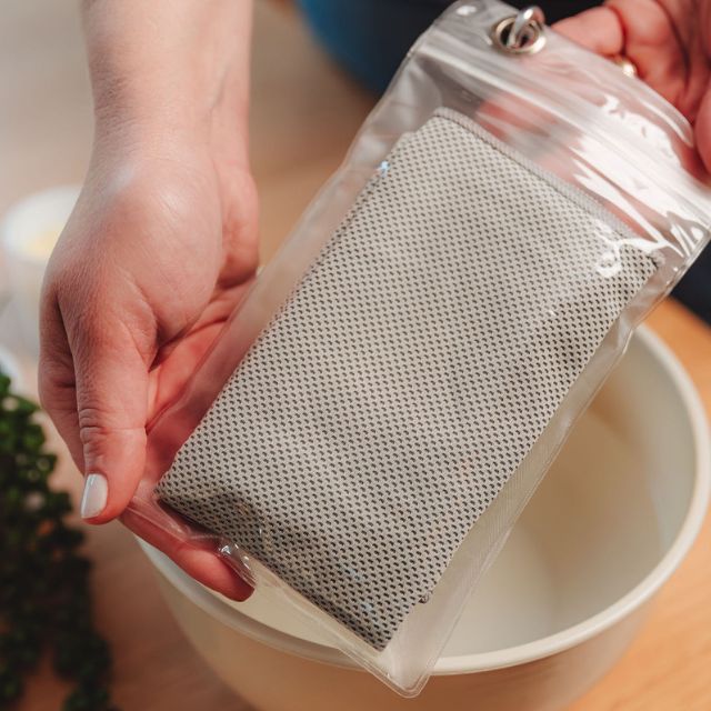 Made from a feather-light cooling mesh, it activates instantly with water. Just soak, wring, and shake to feel a natural temperature drop that helps you reset and stay comfortable.
